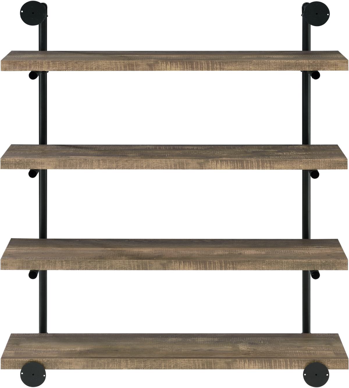 Industrial design can be elegant, as shown by this wall shelf. Plumbing pipe frame highlights the rugged utility that's the hallmark of the style. Wall hanging adds a unique element to the piece. Incorporates four (4) open shelves for ease of storage or display. Available in a variety of finishes and widths for your specific style and space needs.Read More