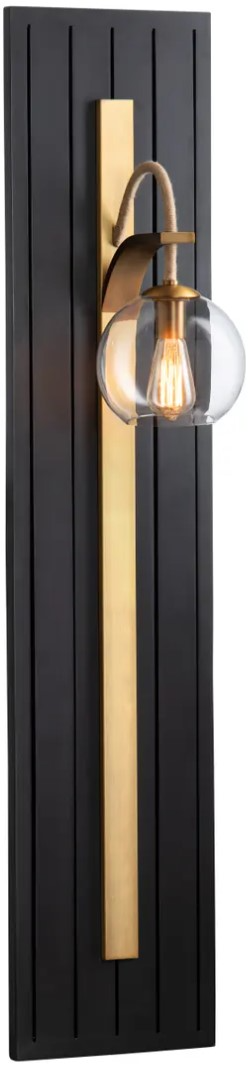 The combined elements of the Crestview Dixon Wall Sconce give it a versatile aesthetic that could complement a variety of decorating styles. The mixed materials include a board and batten panel with a brass plate from which a glass globe suspends from a knotted hemp rope.Read More