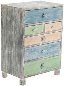 This Crestview Collection Key West gray Driftwood and Multi Color Nautical 6-drawer Chest has a light and buffed sand white finish that adds softness to your room. Each of the six drawers alternate gray and blue colors and sport cheerful fish and starfish drawer pulls.Read More