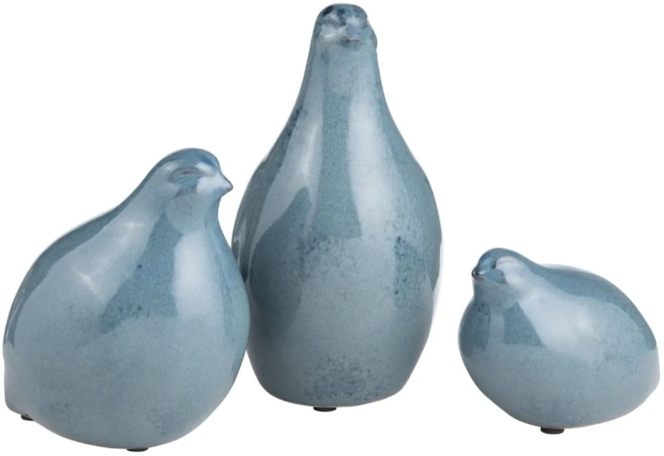 Add a serene touch to your home with this 3-piece set of blue ceramic Partridge statues. Their rustic finish and form evoke charm, making them ideal accents for mantels, shelves, or tabletops in cozy interiors.Read More