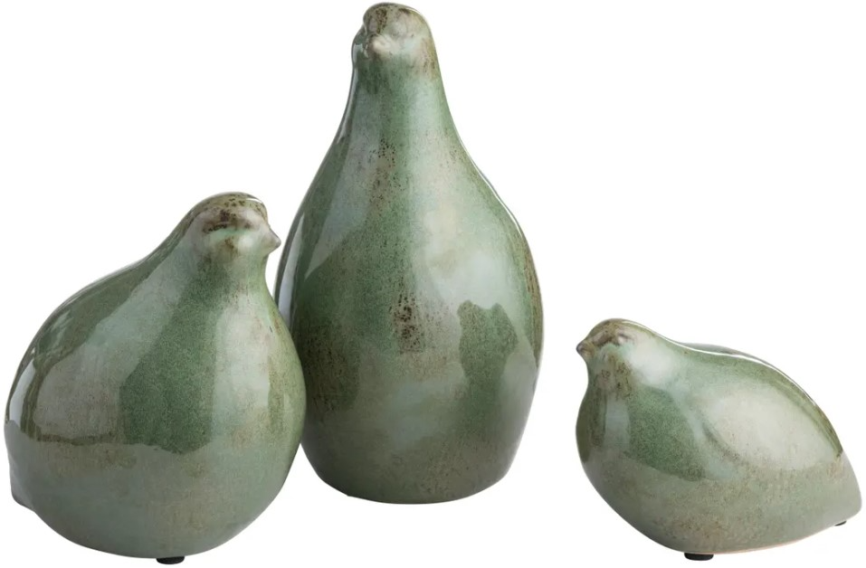 This 3-piece set of green ceramic Partridge statues brings rustic charm to any space. Crafted with a traditional detailing, each statue adds a touch of elegance—perfect for shelves, mantels, or cozy interiors.Read More