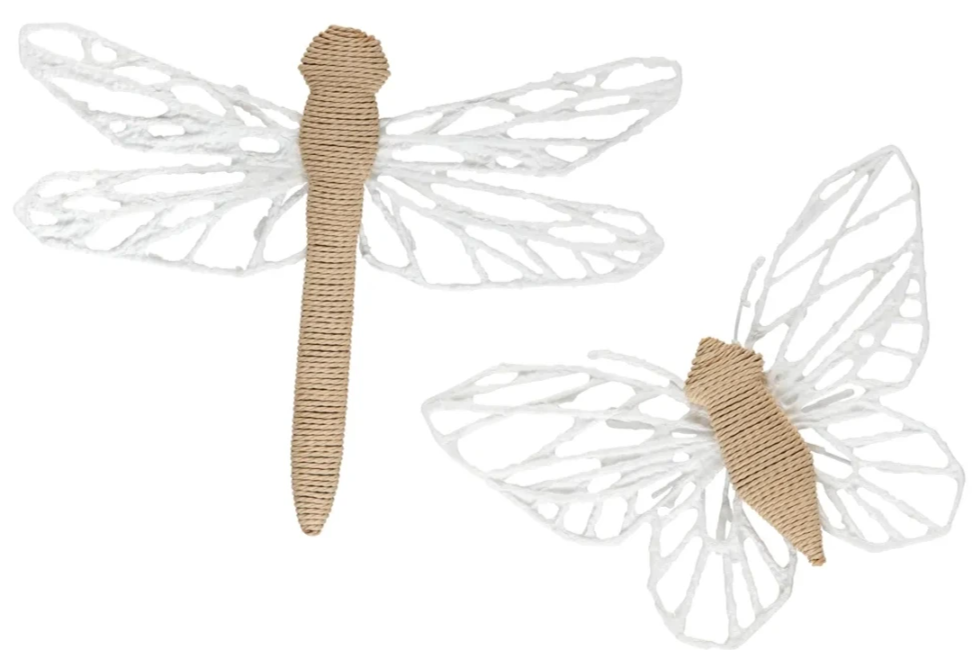 Bring whimsy and charm to your home with the "Wings Up" wall decor set by crestview collection. This delightful duo showcases a butterfly and dragonfly crafted from wicker and parchment, offering a soft, neutral palette that blends seamlessly into cottage or nature-inspired interiors.Read More