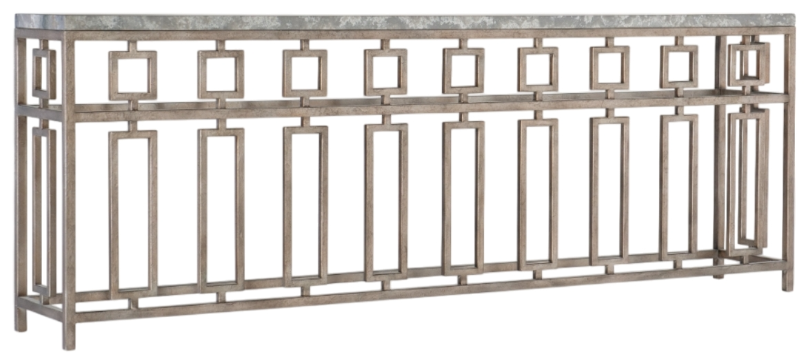 Inspired by the Italian coastline of the Adriatic Sea, classical design is made new in the Lapilli console table combining a metal base shaped with airy geometric motifs and an organic stone veneer top. The base is finished in a metallic silver tone with distressing texture applied for tactile appeal.Read More