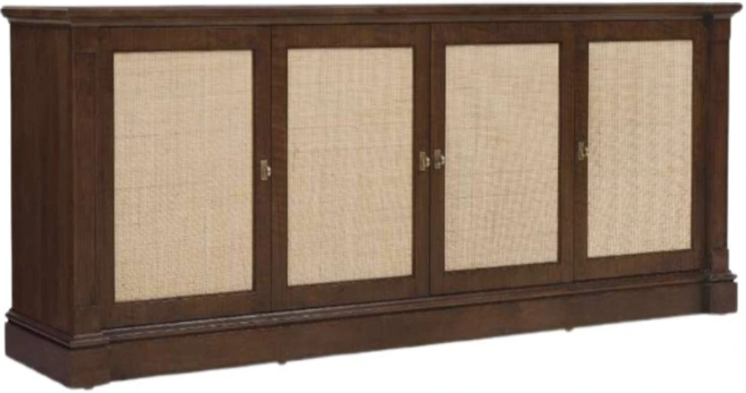 The Archives entertainment console brings a sophisticated blend of materials and finishes to your home entertainment space. Featuring four woven-cane panel doors and adjustable shelving, this console is designed to accommodate an 80" flat-screen TV, offering style and functionality.Read More