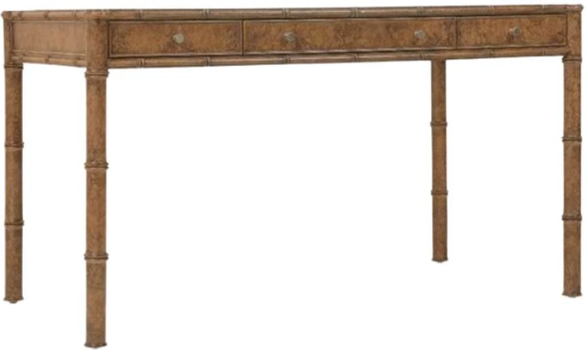 The Archives writing desk combines historical charm with modern functionality, ideal for creating a sophisticated home office. Its design features rich birch and oak veneers, a unique mottled amber faux-tortoise shell accent finish, and woven cane top with a protective glass insert.Read More
