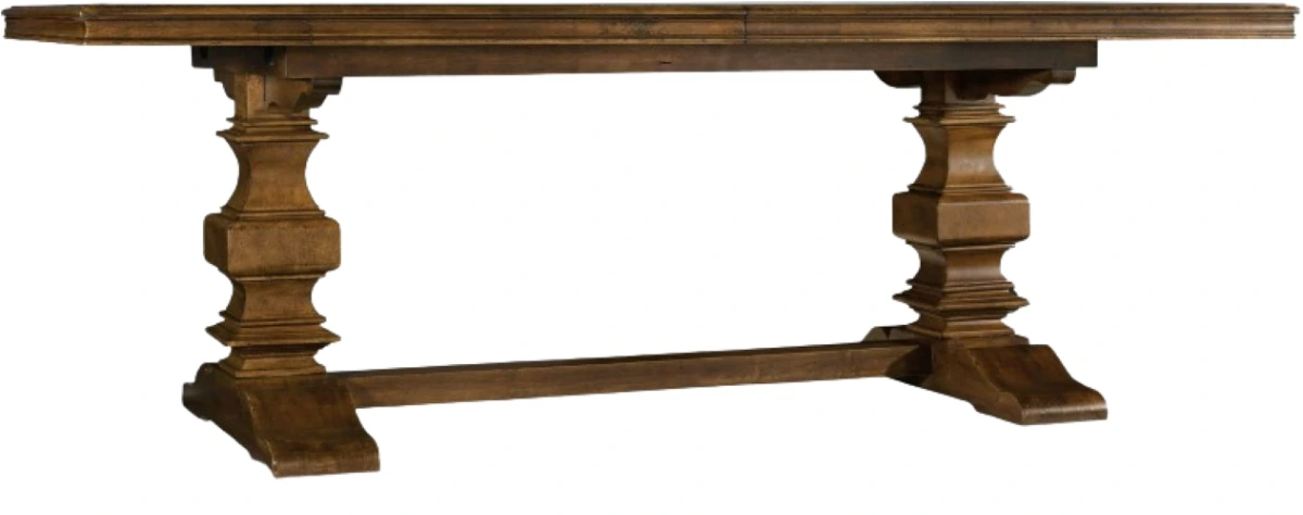 Inspired by french antiques and influenced by classic farmhouse design, the Archivist trestle table is an inviting gathering table for welcoming family and friends alike. The classic pedestal bases and top are finished in a soft casual brown over pecky pecan, for a rustic authentic look.Read More
