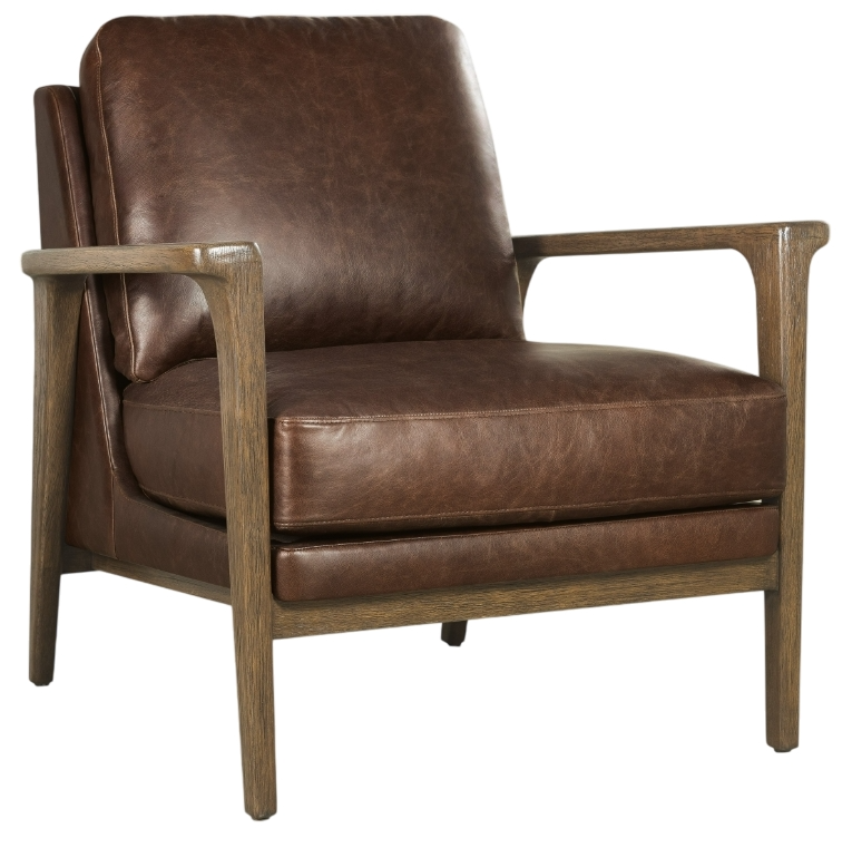 Rich and refined, the Ashland chair in Valeris chocolate top grain leather offers timeless appeal with a modern twist. Featuring exposed dark wood arms, a plush pillow back, and high-resilience foam construction, this stationary club chair brings sophistication and comfort to any transitional or contemporary space.Read More