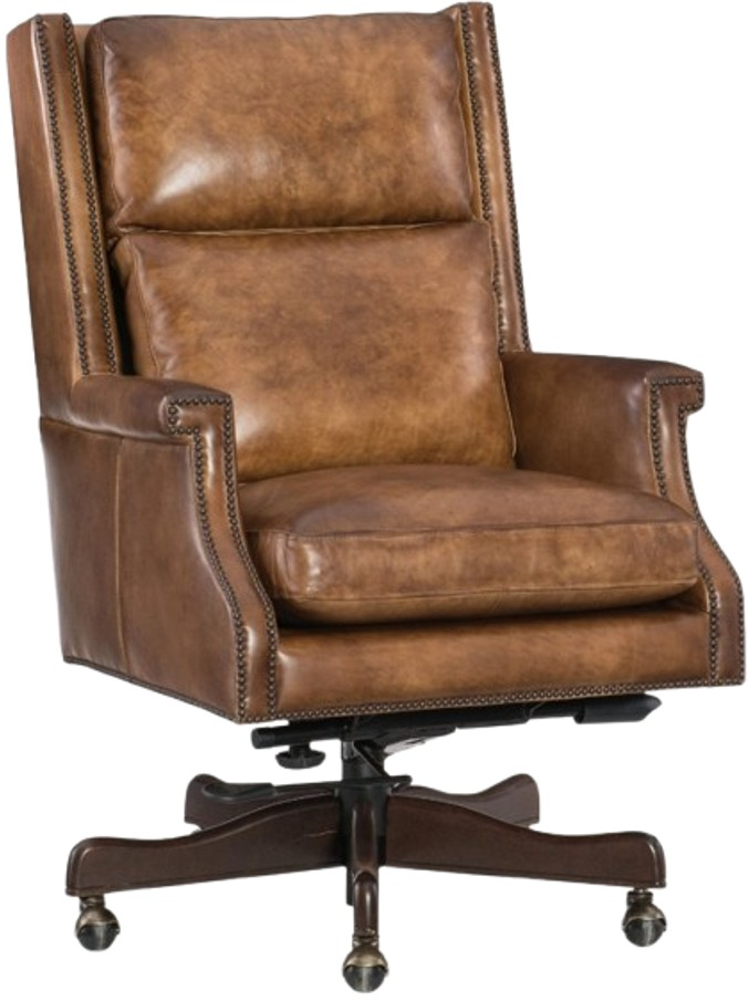 Combining a casual pub back with a timeless, tasteful silhouette, the Becket Executive Swivel Tilt Chair is covered in the luxurious checkmate pawn handwiped aniline top grain leather with a wood base in the natchez brown finish. On casters, it is height-adjustable with a pneumatic lift.Read More