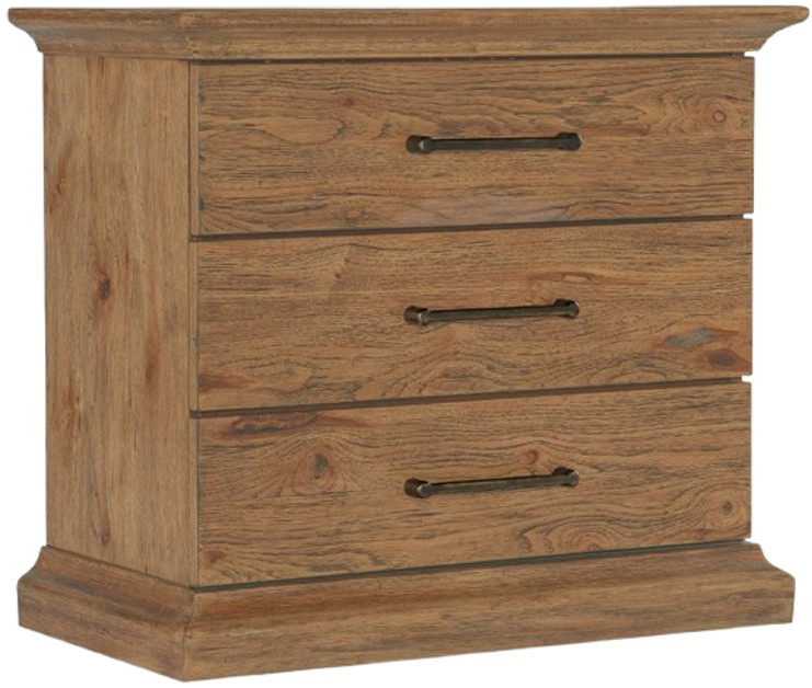 Exuding the heritage of post and beam construction and true craftsmanship, the Big Sky nightstand has a straightforward silhouette design crafted of pecky hickory veneers with a solid-wood edged top. Finished in the warm and rustic vintage natural, the piece is accented by dark brushed bronze bar pulls.Read More
