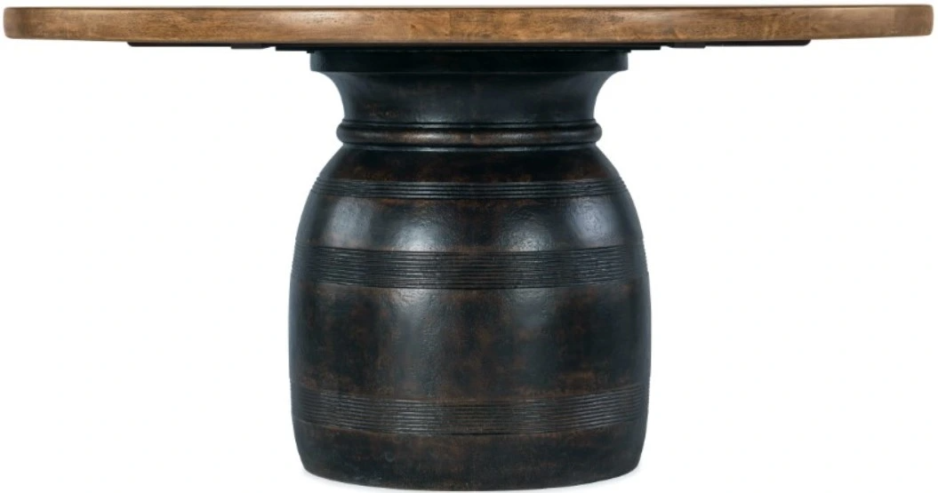 Tactile and rustic and evoking the artistry of true craftsmanship, the 60-inch round Big Sky Dining Table has an urn-shaped base finished in the Charred Timber color. The contrasting top is in Vintage Natural, a warm, organic finish over Hickory Veneers and a solid-wood edged top.Read More