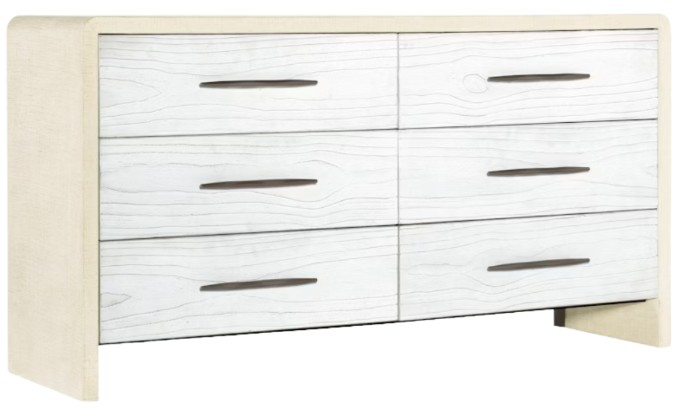 Svelte and sophisticated in a serene two-tone finish combining a palette of white, cream and taupe, with six self-closing drawers is a stylish statement piece brimming with storage. The top drawers have a removable gray felt liner, the right top drawer has a removable gray felt jewelry tray and the bottom drawers are cedar-lined.Read More