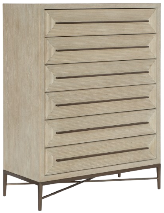 Svelte and sophisticated in a serene soft finish with tactile reeded drawer fronts, the Cascade chest with six self-closing drawers is a stylish statement piece brimming with storage. The Terrain finish on oak veneers is dry-brushed for a casual appeal, and accented by champagne-colored bar pull hardware.Read More