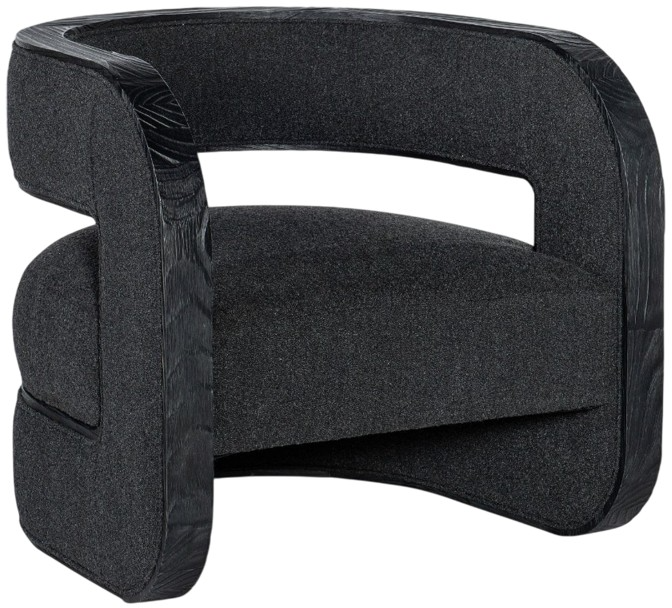It looks like a piece of decorative art while offering cozy comfort. The Burke accent chair is crafted of pine veneers in a charred black finish, and has an upholstered seat and back covered in wolf ebony.Read More