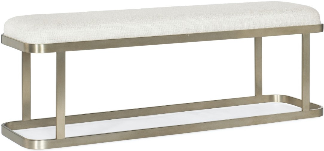 Combining a cozy upholstered seat with a sleek metal base in a champagne finish, the River Branch Bench is chic, modern and inviting. The seat is upholstered the Merino Pearl performance fabric.Read More