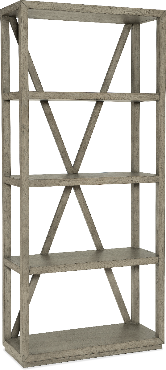 With a rustic, weathered finish, crisp lines and an organic grain pattern, the Wisemans Etagere has a classic X-back and chic silhouette with four fixed shelves. Crafted of oak veneers, the etagere is finished in the soft smoked gray mink. Anti-tip hardware is included.Read More