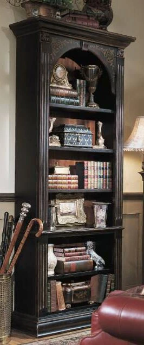 In a beautiful marriage of storage and style, this black hand painted classic bookcase silhouette with gold accents is both tasteful and practical, featuring four adjustable shelves and one stationary shelf.Read More