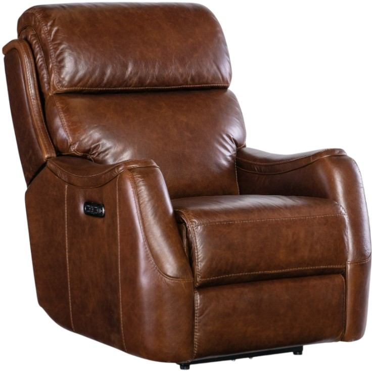 Casual goes chic with the Harlan power recliner, featuring a bustle-style back, sloped/scooped arm design, and topstitch trim. Measuring 32 inches wide, this recliner is covered in aniline top-grain Carrington Walnut leather. A USB port adds convenience.Read More