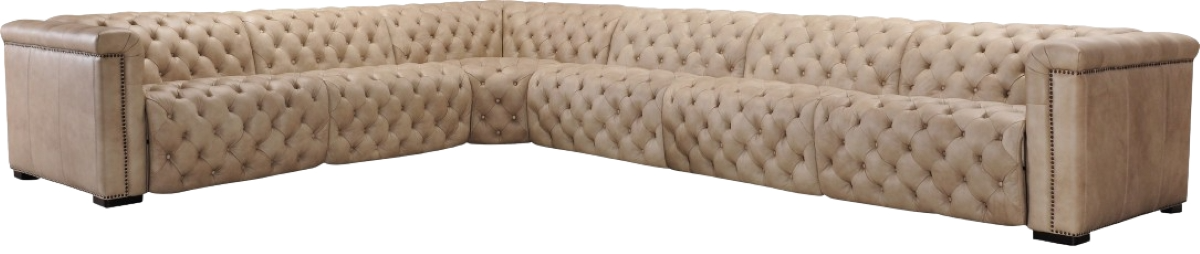 In a delightful surprise, 3 of the 6 seats on the stunning Savion Sectional transform to recliners using a smooth power control button, offering exceptional comfort. The beautiful Giovanni Taupe leather cover is finished for stain protection and is hand wiped, giving each piece individuality, authenticity and sophisticated appeal. Hooker Furniture Upholstery is a designer-inspired collection of upscale leather seating that includes versatile reclining chairs, modern-day reclining sofas, eclectic club and artisan accent chairs, as well as a selection of executive desk chairs for the home. Designed and curated to appeal to a variety of style tastes, each piece from Hooker Furniture Upholstery is meticulously crafted in a unique selection of textures and hues.