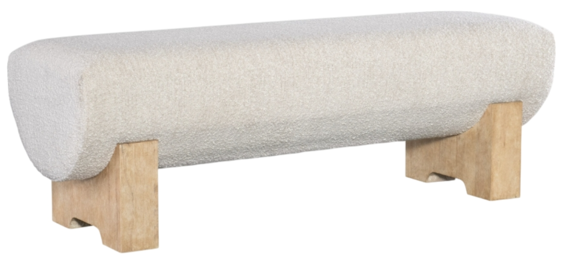 Chunky, chic and comfy, the Retreat bed bench is designed with a semi-circle shaped seat and block style legs. It is upholstered in the cozy neo cream performance fabric, and finished in the sand-colored dune, transparent by design to reveal the unique grain patterns in the wood veneer.Read More