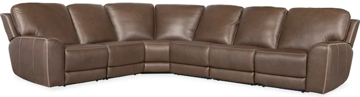 Includes left arm chair, two stationary armless chairs, one power headrest armless recliner, corner wedge and a right arm chair