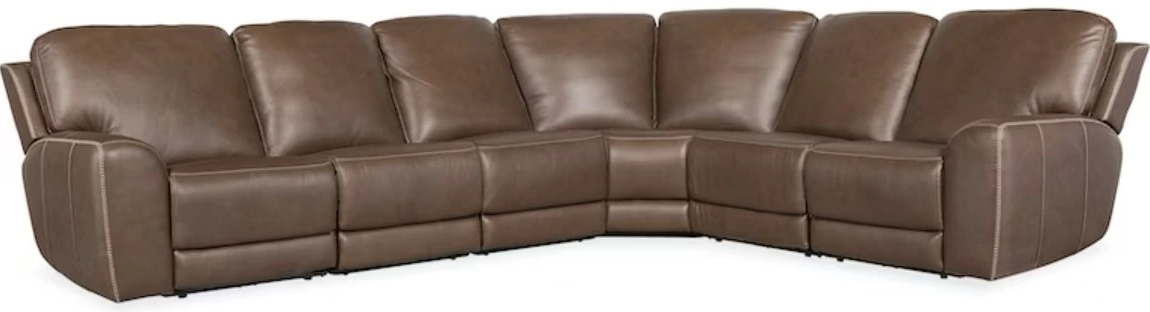 Includes left arm chair, one stationary armless chair, two power headrest armless recliners, corner wedge and a right arm chair
