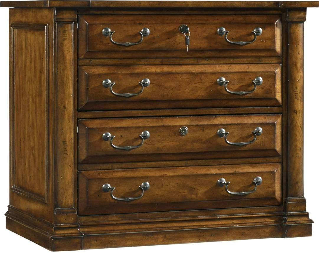 In a warm, chestnut-colored rustic finish over figured Alder Veneers accented by classic handle hardware in an aged copper finish, the Tynecastle Lateral File projects a Hunt Country vibe. There are two locking file drawers with a Pendaflex letter/legal filing system.Read More