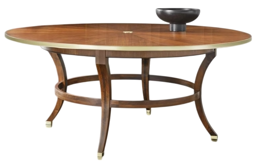 Accent your dining room with the Breganza Dining Table from Somerset Bay Home. Featuring a solid brass banding and details, this piece will make a statement and serve as an eye-catching centerpiece in your dining area.Read More