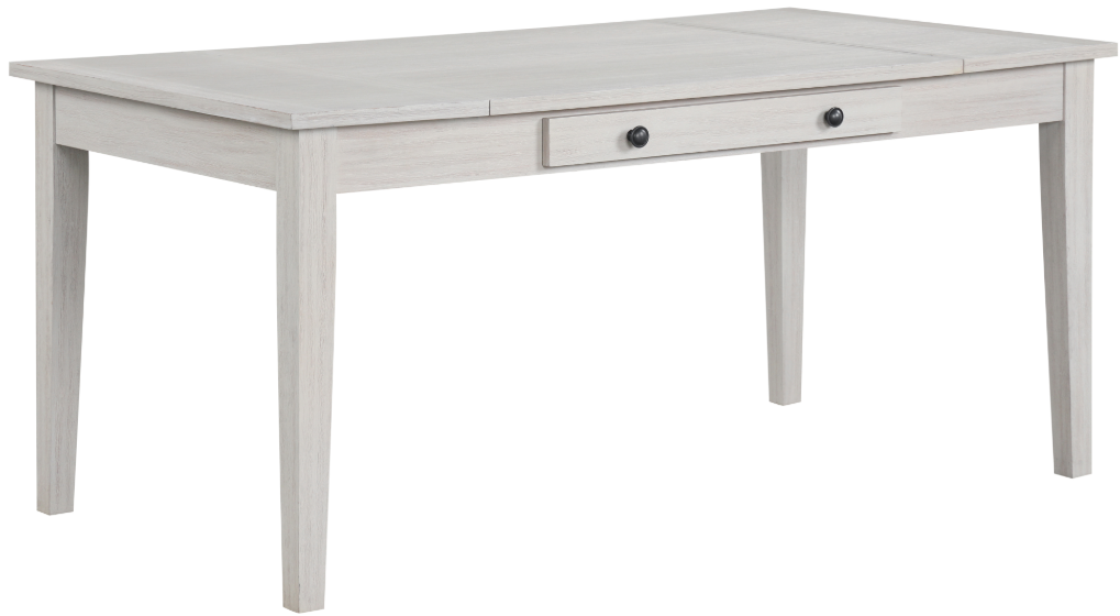 This table showcases a clean, contemporary design with a rustic twist, featuring a sleek silhouette complemented by a soft, airy driftwood finish.