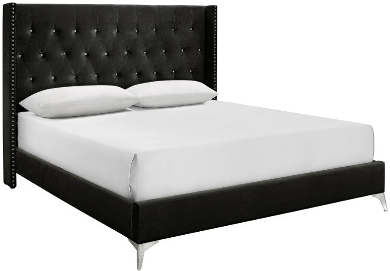 The Huxley has clean lines enhanced with a crystal button tufted headboard with silver studded trim for a touch of luxury and comfort and metallic accents for a modern touch.
