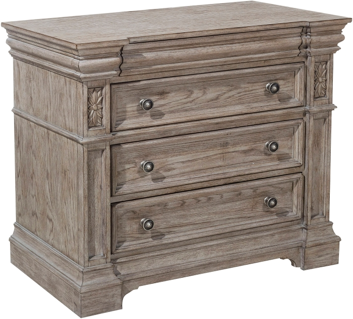 The Kingsbury bachelor’s chest brings together timeless european design, grand scale and a relaxed french gray finish on oak veneers to exude casual elegance. Carved elements and prominent moldings create a bespoke yet inviting style. Featuring 4 drawers with english dovetail construction and metal ball bearing side guides.Read More
