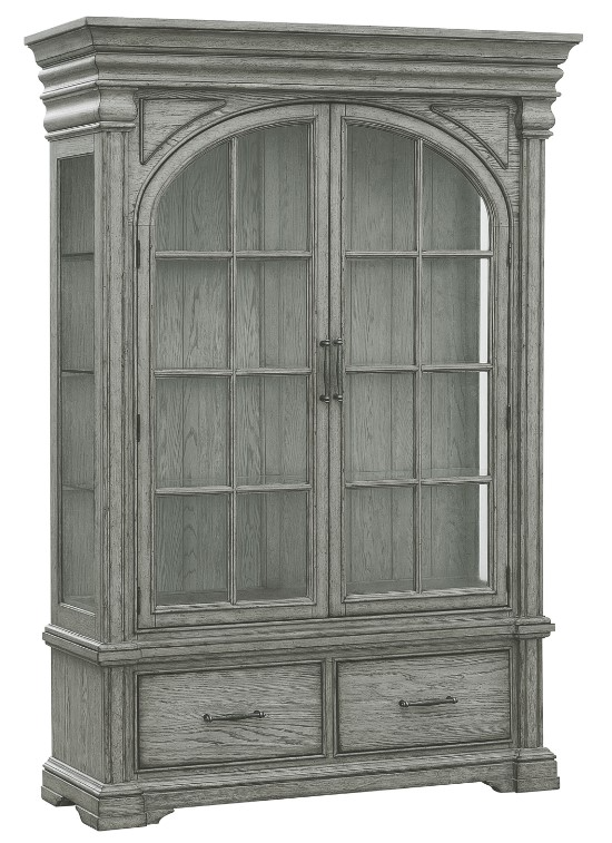 The perfect focal point for any dining area, the buff gray china deck will bring an architectural presence with its beautiful arches, side pilasters, and heavy crown molding. Store and display serving items and family treasures on the 3 glass shelves. Interior lighting highlights the display and adds a soft ambient light to the areaRead More