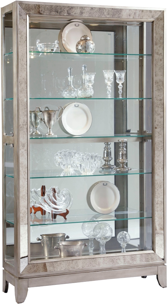 Give your room a chic makeover with this centerpiece. The shape is simple. The antiqued mirror frame insets and Platinum finish are glamorous. Our curio sits off the ground on a refined saber foot. There is no prominent hardware to interrupt the dramatic look. This curio is sturdily built of hardwood solids and veneers.Read More