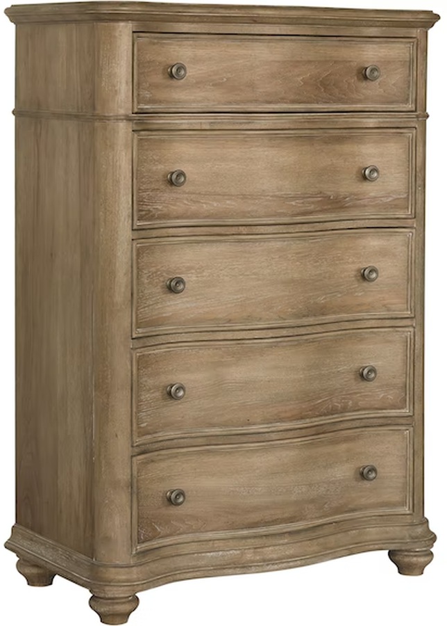 Classic elegance meets everyday function in the Pulaski™ Weston Hills 5-drawer chest. Crafted with cathedral hickory veneers in a warm Flax Seed finish, this chest includes five roomy drawers, a removable felt liner in the top drawer, a cedar-lined bottom drawer, and traditional bun feet for added charm.Read More