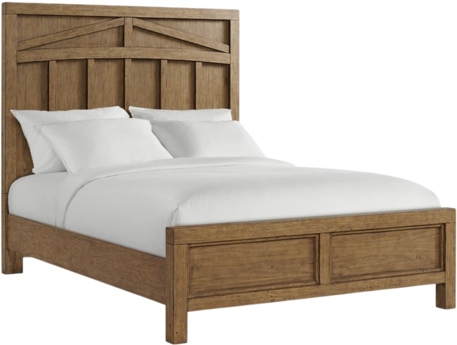 The Bozeman Toasted Almond Queen Panel Bed showcases rustic elegance with a warm toasted almond finish. Crafted from Acacia solids and veneers, this bed features a sturdy panel design that highlights the natural wood grain. Its timeless style and durable construction make it a perfect centerpiece for any bedroom.Read More