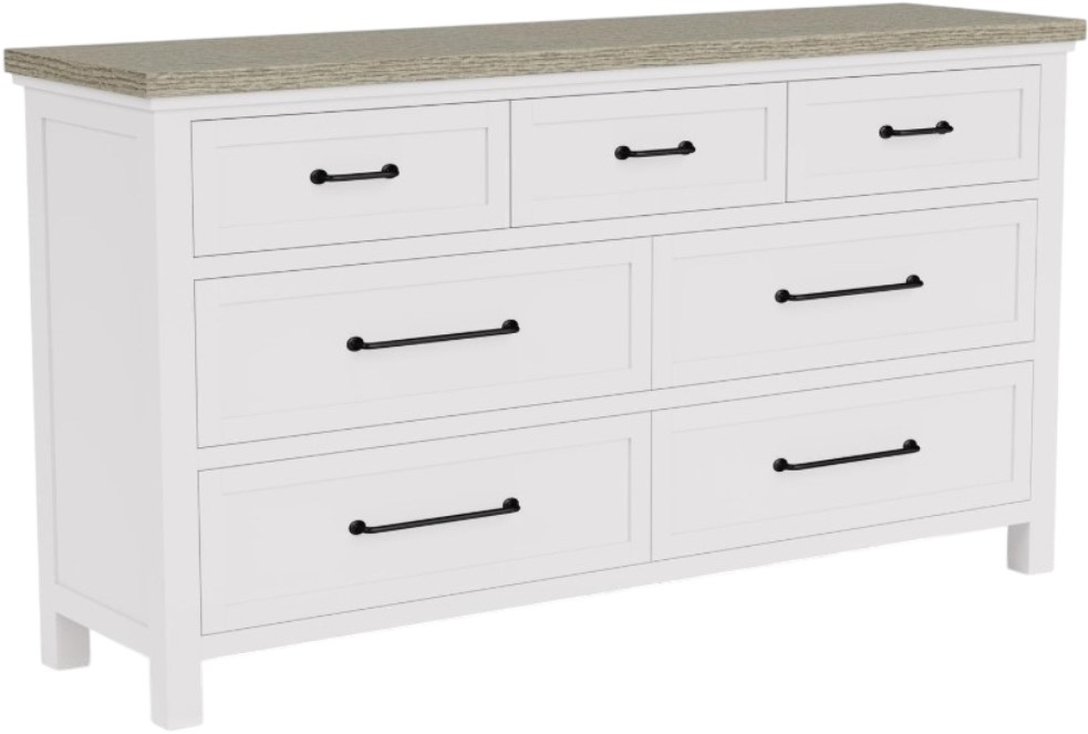 The Cora Seven Drawer Dresser offers a perfect balance of style and function. Crafted from select hardwoods and random matched Oak veneers, it features a soft grey top over a white case. Elevated for an airy feel, it provides ample storage with dovetail-constructed drawers, cedar-lined bottom drawers, and custom hardware.Read More