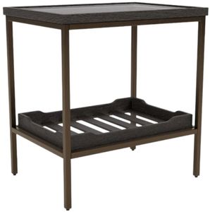 The Elkmont ravenwood black/brown side table blends rustic warmth with modern flair. Crafted from pine solids, it features a wire-brushed tan brown underlayer and sleek black top, a rectangular glass insert, and removable trays for subtle storage and style.Read More