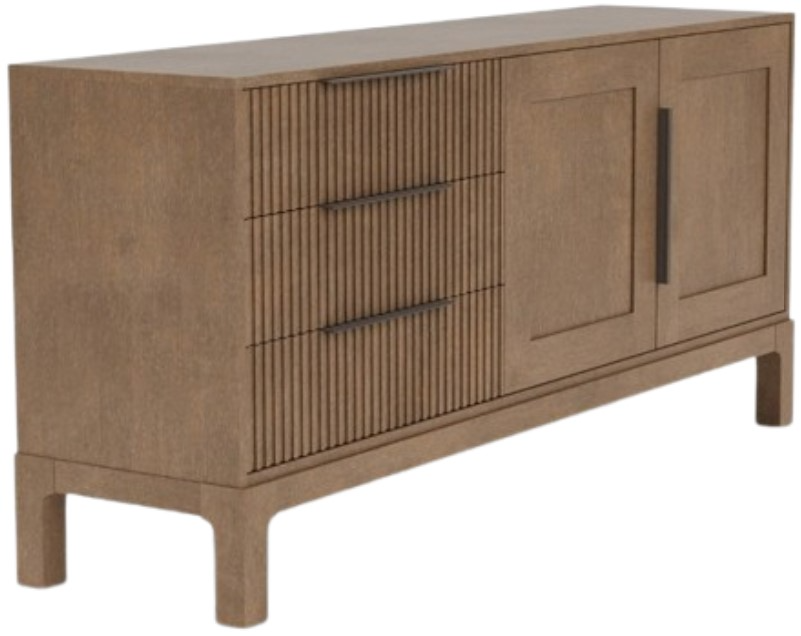 The Jaxon casual mink white accent server blends contemporary flair with soft elegance. Crafted from random-matched split cathedral white oak, it features a casual mink finish, three tambour-accented drawers, two fixed shelves, dovetail joinery, and smooth ball-bearing drawer guides.Read More