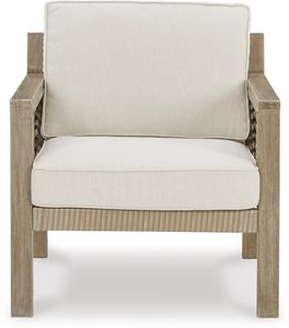 You've got it made in the shade with this cushioned outdoor lounge chair set. Made with eucalyptus wood, each chair features a wicker seat, back and sides. Tan cushions are wrapped in easy-clean Nuvella® fabric, which stands up to harsh weather for season after season of enjoyment.Read More