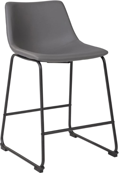 With its distinctive contoured bucket seat and tubular metal base, this bar stool serves up a fresh twist on mid-century inspired style. Chic gray faux leather upholstery adds to the aesthetic. What a timeless look for eat-in kitchens and casually cool dining rooms. Assembly required for this product.Read More