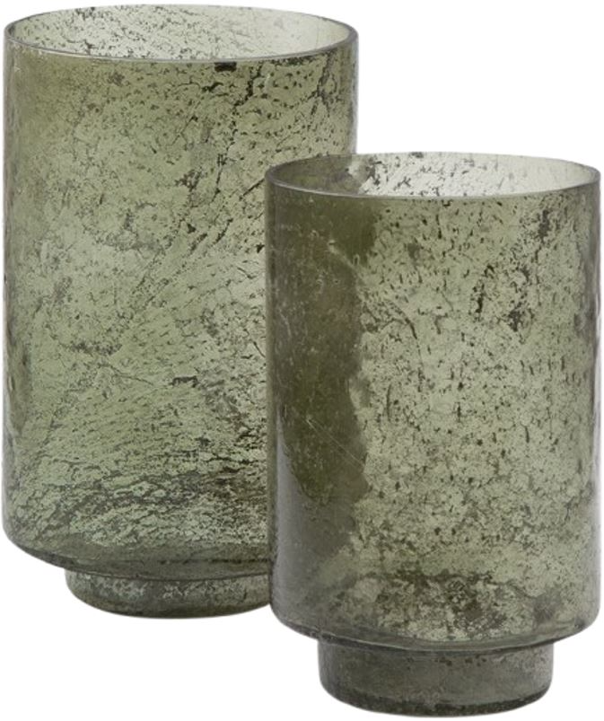 Create an even cozier ambiance in your home with this candle holder set. Their green sanded glass makes the soft glow of electric or real candles all the more beautiful. Stunning when displayed as a duo or standing alone, these holders are a simple way to upgrade the style of your space.Read More