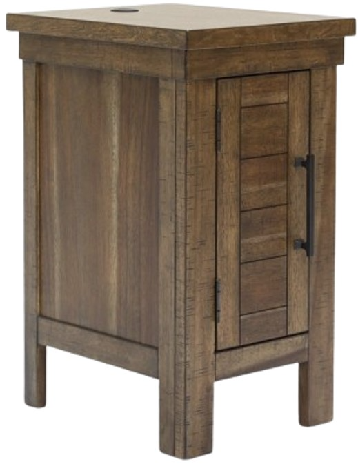 This chairside end table might appear simple at first sight. But a closer look reveals beauty in the details. With a plank-effect cabinet door, a tobacco brown finish and antiqued bronze-tone hardware, it’s simply beaming with charm. This side table's cabinet and tabletop space, along with USB charging, will serve you well for years to come.Read More