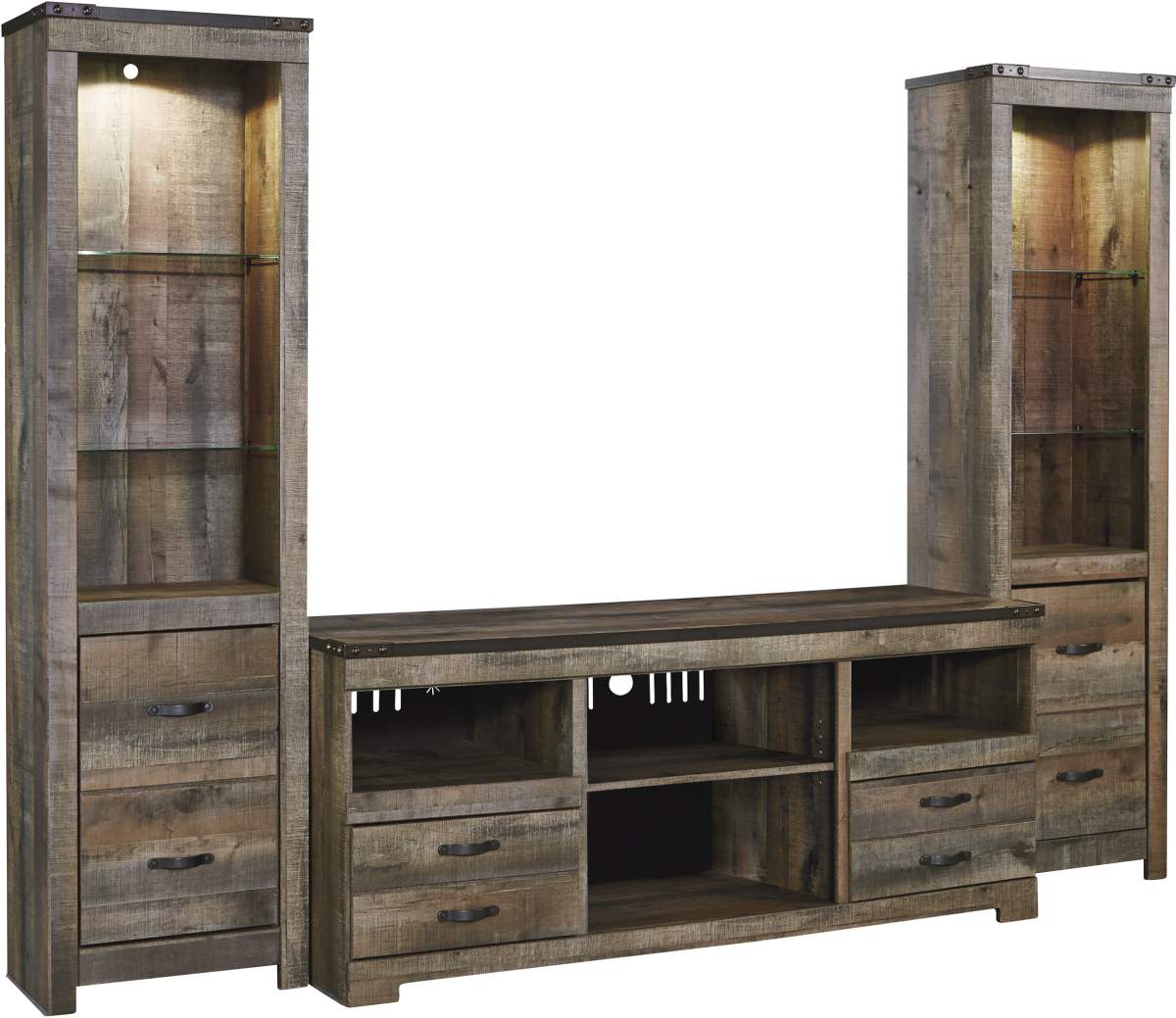 Entertain a rugged yet refined sense of style with this entertainment center. Its warm finish and plank-style details pay homage to reclaimed barn wood, while the metal banding with nailhead accents infuses a touch of industrial cool. Ultra-clean lines ensure a look that can go from the country to the city and feel equally at home.Read More