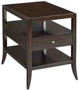 Shown in Ebonized Mahogany finish. A wonderful side table with sophisticated metropolitan styling. A rectangular top is veneered with mahogany resting over four squared posts that are joined by a handy middle drawer and low shelf. Make a bold statement by incorporating this stunning furniture into your home.Read More