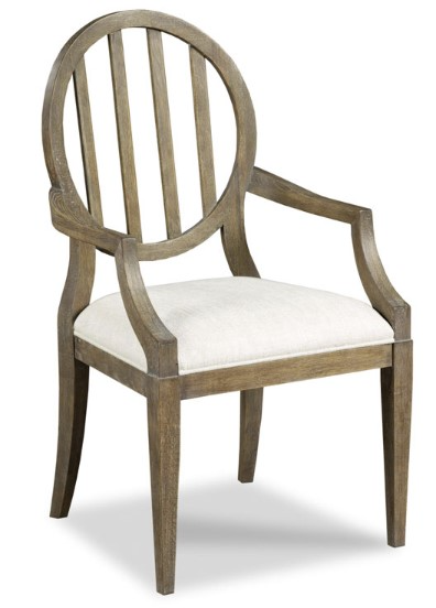 A graceful oval back is accented with a colonnade of shaped slats above an upholstered seat raised by gradual tapering legs.Read More