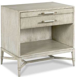 This Iris Luna Bedside Table from Woodbridge Furniture is a rectangular top rests over a pull out shelf and a handy storage drawer over an adjustable shelf. Elevated on tapering legs joined by an intricate stretcher.Read More